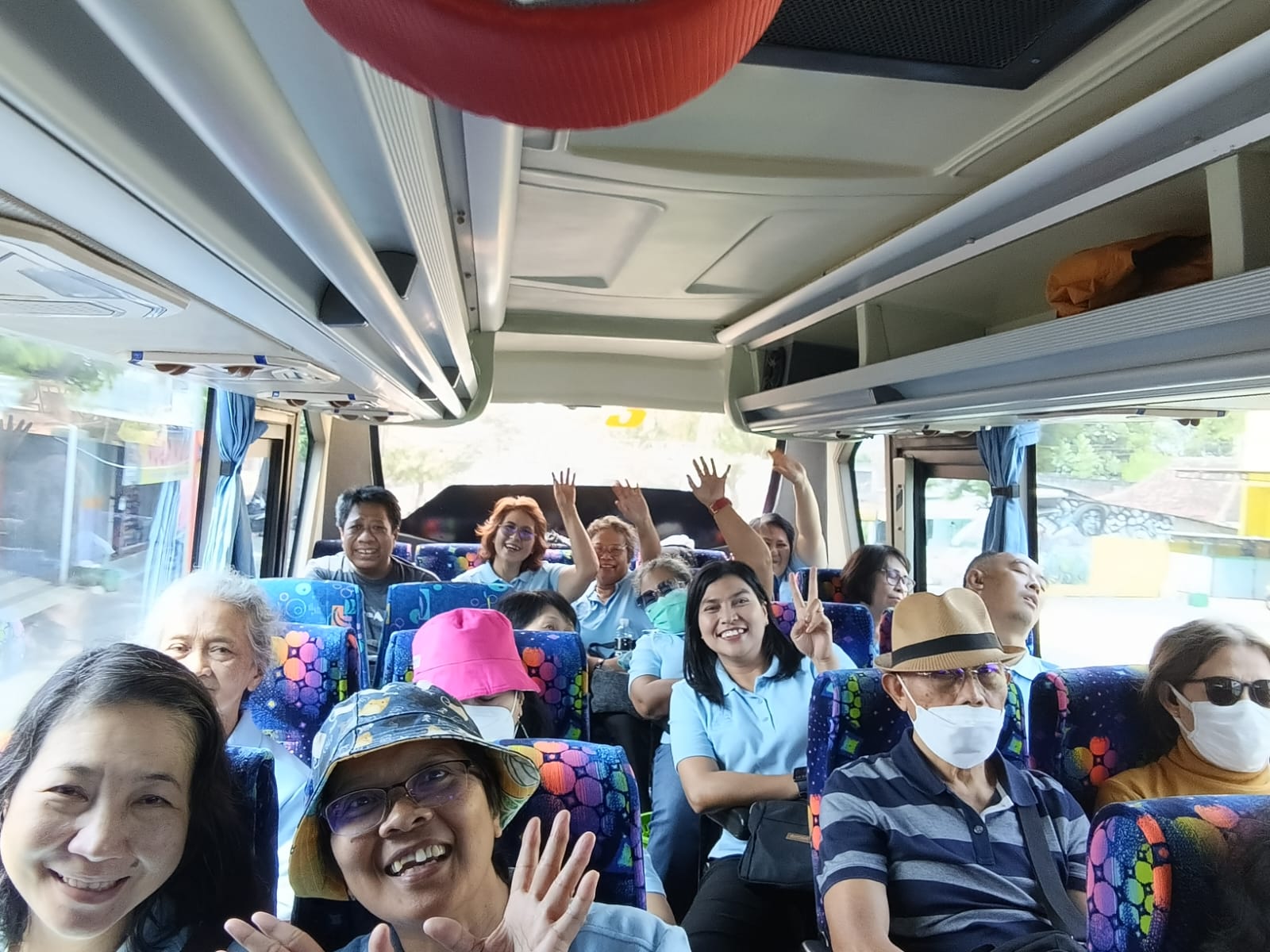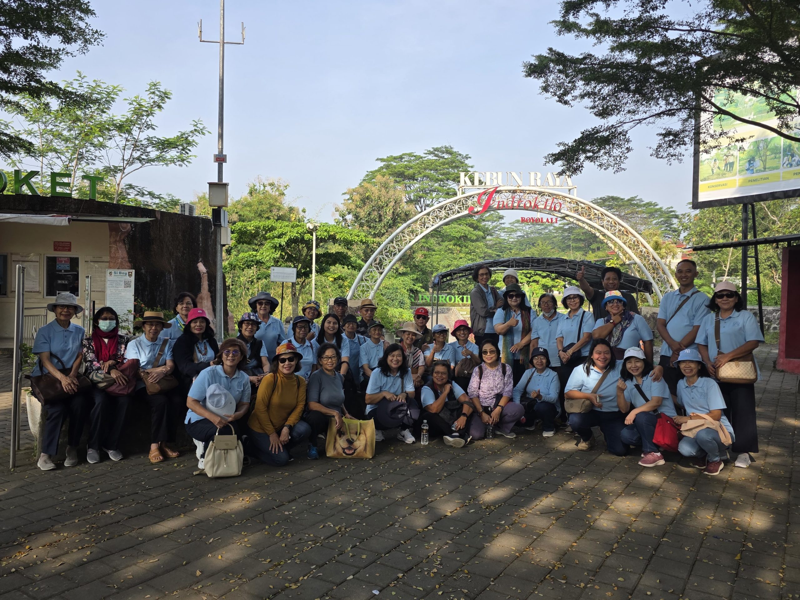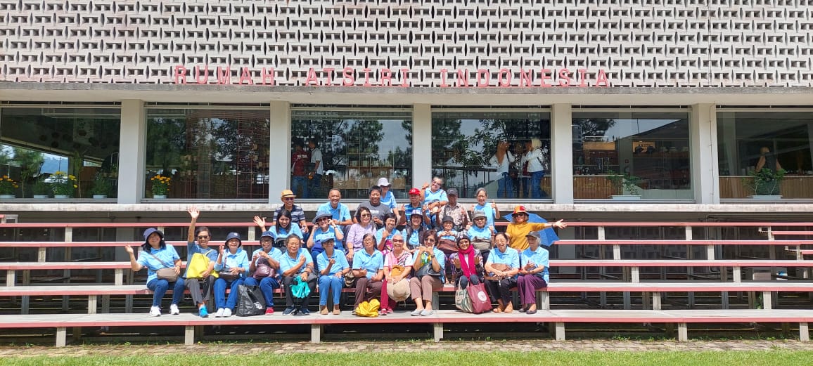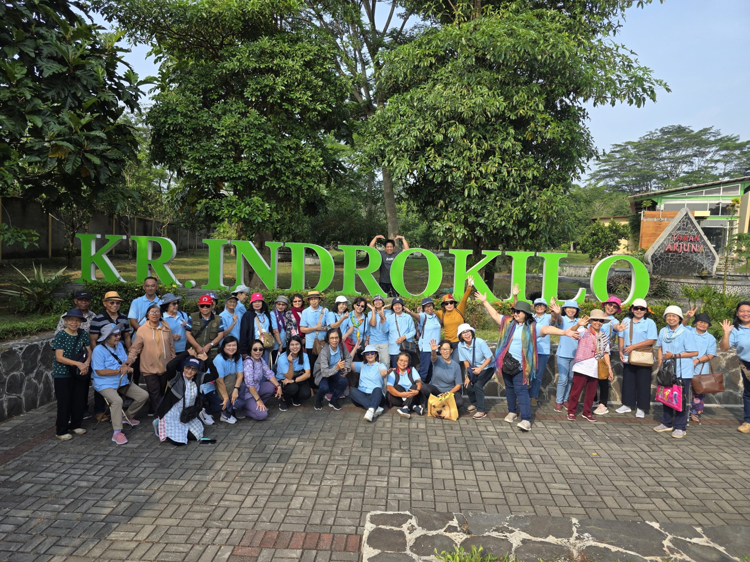 Jam baru menunjukkan pukul 06.00 ketika satu persatu peserta REFRESHING TRIP KOMISI PERKUNJUNGAN DAN PELAYANAN KEMATIAN (KPPK) mulai berdatangan di halaman gereja. Wajah mereka tampak ceria. Kalau soal ketepatan waktu, senior-senior kita ini memang patut diacungi jempol. Tepat pukul 06.30 acara dimulai dengan didahului kebaktian singkat yang dipimpin oleh Pdt. Em. Iman Santoso. Setengah jam kemudian kebaktian selesai dan kepada peserta dibagikan snack dan sarapan pagi yang bisa dinikmati dalam perjalanan. Peserta langsung menuju kendaraan masing-masing. Kali ini peserta sebanyak 41 orang dibagi dalam 3 kendaraan yaitu satu buah bus sedang, 1 buah mobil gereja dan satu buah mobil milik jemaat. Tidak pakai lama, kami pun berangkat. Tujuan pertama adalah Kebun Raya Indrokilo di Boyolali.
