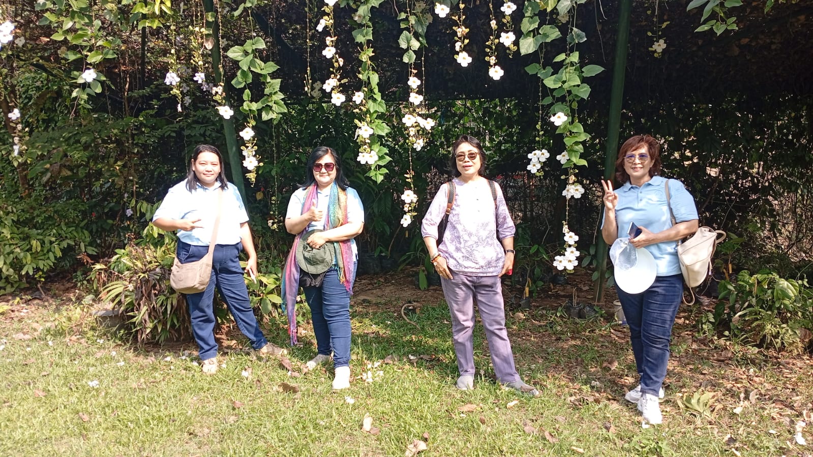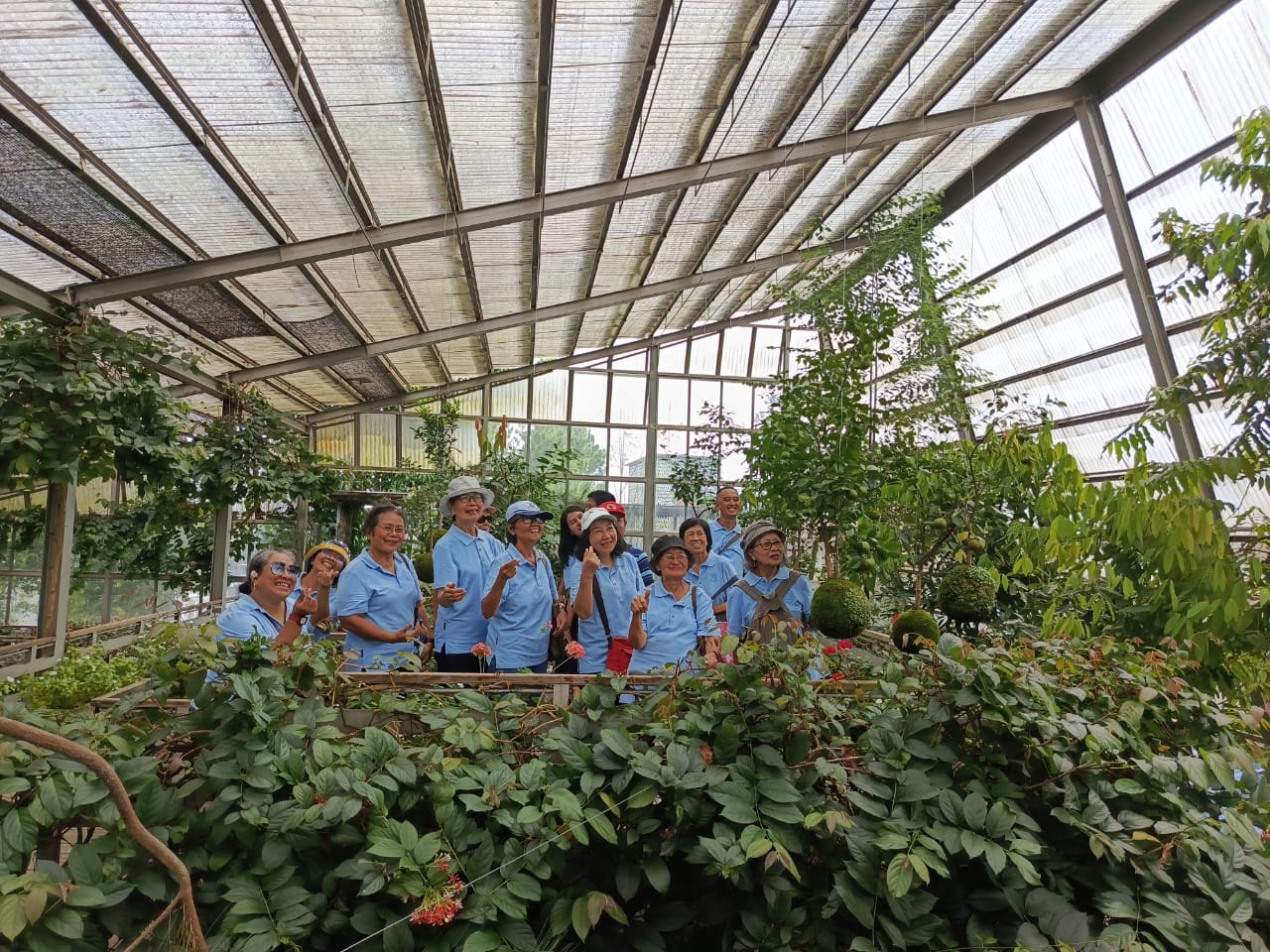 Tidak terasa jam sudah menunjukkan pukul 13.00, tapi kami masih betah. Selain udaranya yang sejuk, penataan tanaman-tanaman yang indah membuat kami ingin berlama-lama. Kunjungan ke Rumah Atsiri Indonesia ditutup dengan sajian teh serai lemon hangat dan roti panggang. Wah lha iki… cocok karo hawane. Nikmatnya pol. Beberapa ibu masih sempat berbelanja cinderamata walaupun jam kunjungan sudah molor jauhhh…wkwk… kapan lagi ke sini ya Bu.